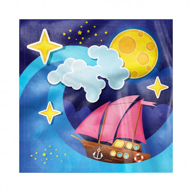 Night Ocean Decorative Satin Napkins Set Of 4 Cartoon Style Of Sailing Boat By Full Moon On Storm Waves Print Square Fabric Party Dinner Napkin 12 Sky Blue And Multicolor By